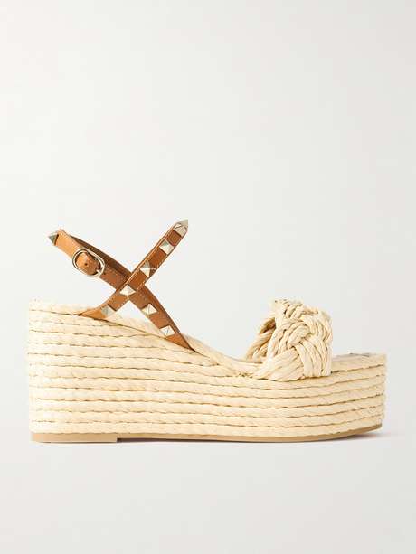 Valentino Garavani's 'Rockstud' wedge sandals combine the glamour of classic platforms with the beachy ease of espadrilles. Set on chunky wedge soles, they're crossed by woven raffia and supple leather straps traced with the label's signature hardware. They're the perfect way to ground floaty summer dresses.