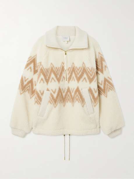 VARLEY Hendrik ribbed knit-trimmed printed fleece half-zip sweater