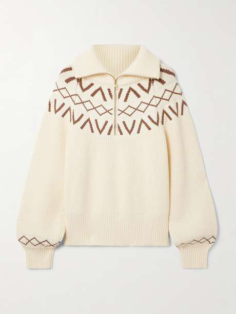 Varley's 'Sigrid' knitted sweater is the ultimate layer for après ski or even a wintry walk. Defined by its half-zip profile, it's patterned with a Fair Isle-style motif and has wide blouson sleeves. Wear yours with leggings and boots.