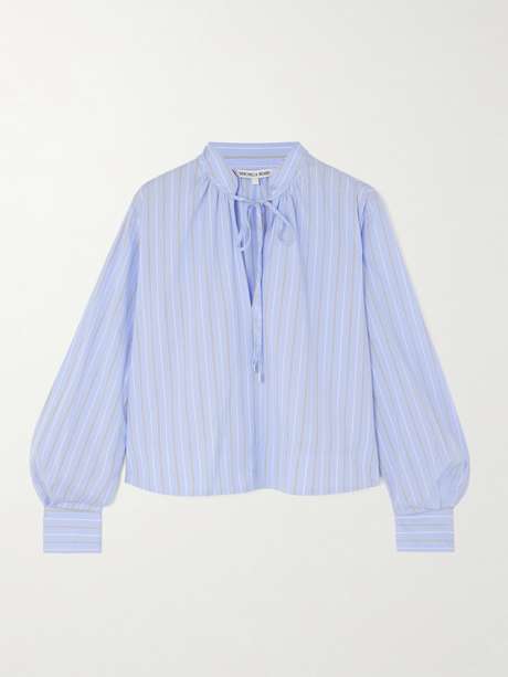 VERONICA BEARD Kaits tie-neck striped cotton blouse