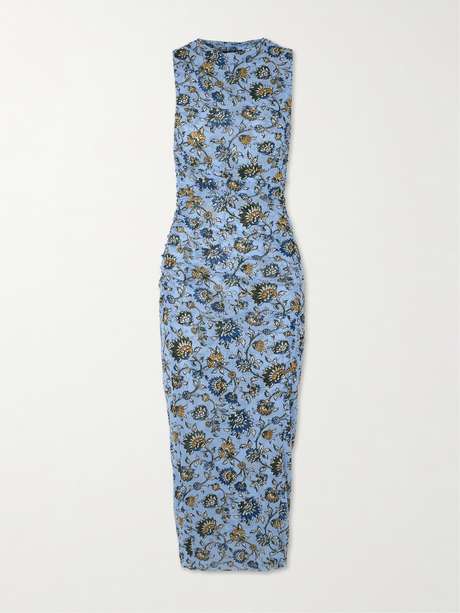 VERONICA BEARD Sylviani ruched floral-print stretch-tulle midi dress