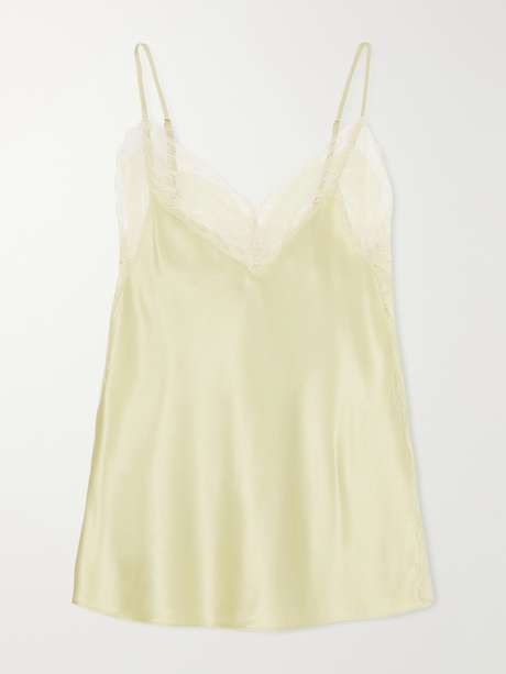 Veronica Beard’s lace-trim cami is crafted from silk-blend, cut to a softly draped silhouette that skims the body. Delicate lace detailing traces the neckline, adding a subtle, feminine contrast.
