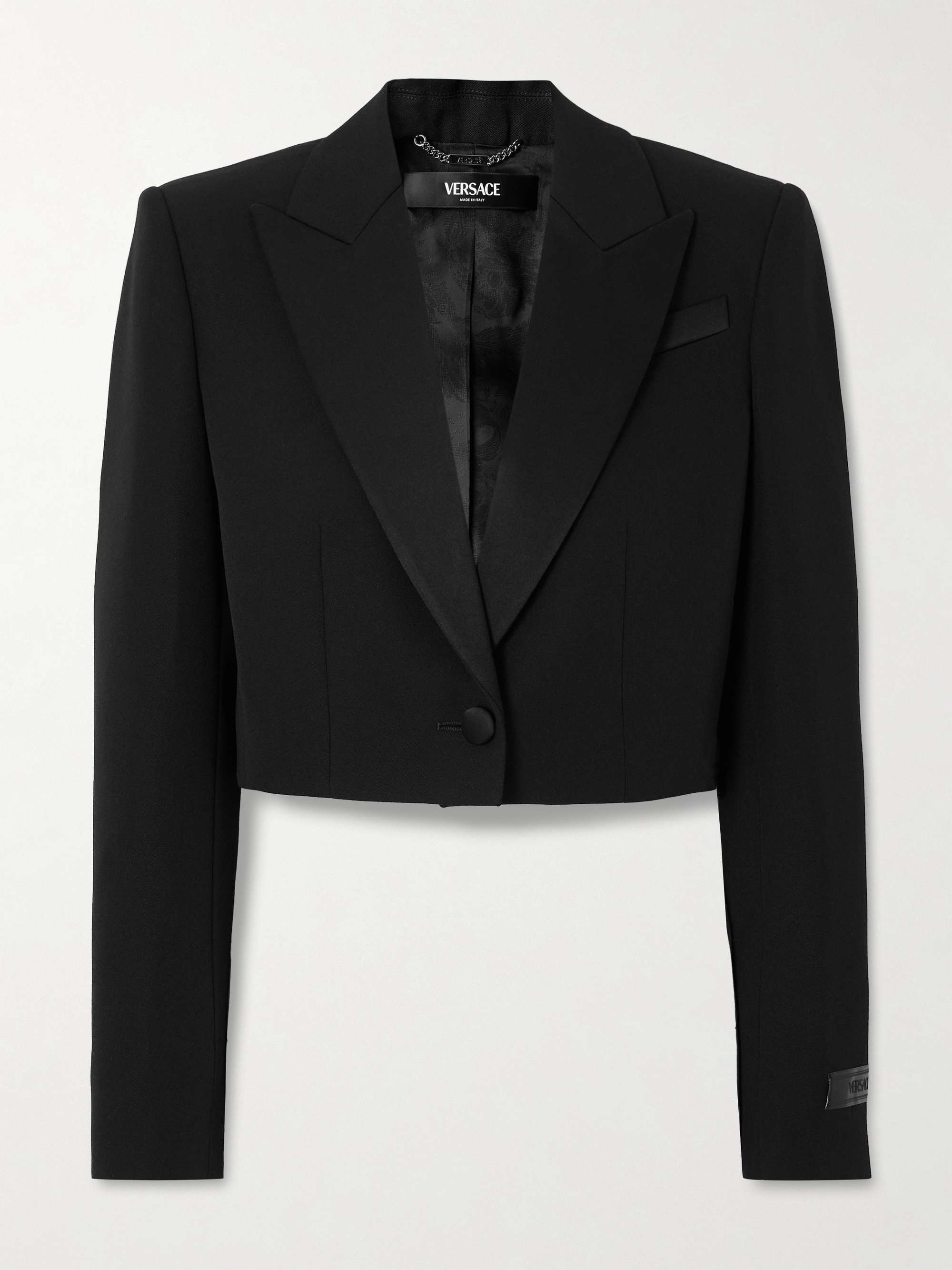 VERSACE Cropped satin-trimmed grain de poudre wool blazer