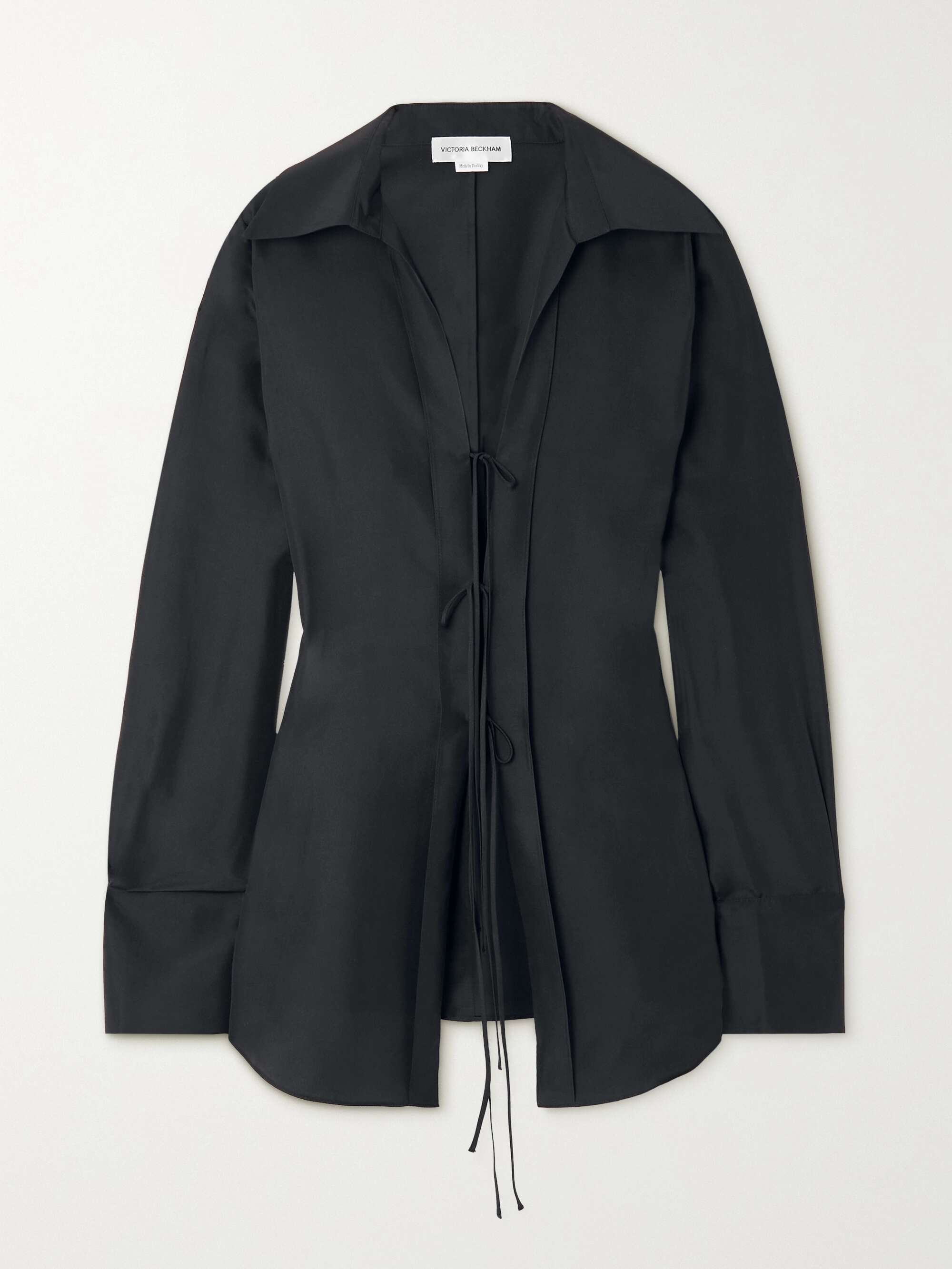 VICTORIA BECKHAM Tie-detailed silk-satin shirt
