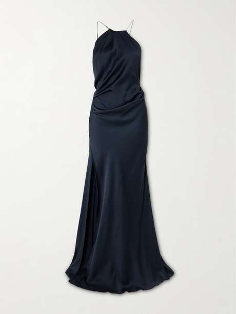 This floor-sweeping gown captures Victoria Beckham's refined take on evening dressing. Draped from lustrous satin, it's finished with a chain strap at the halter neckline that frames the bare back. Gathering at the waist enhances the flattering silhouette.
