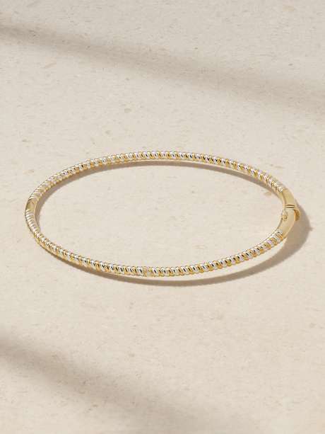 Elegant and delicate, Yvonne Léon's 'Mini Torsade 2 Ors' bracelet is made from a combination of 9-karat white and yellow gold that form a slim, twisted design. It's set with a ring of diamonds for sparkle and has a structured, hinged shape. Create an impactful stack with similar styles from the label.