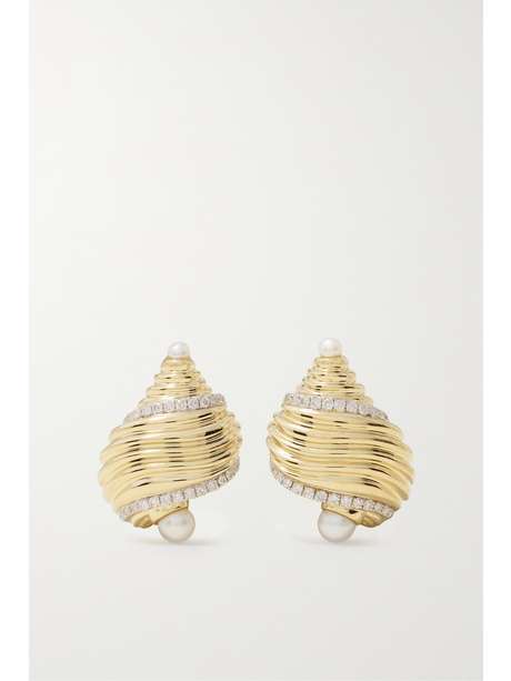 YVONNE LÉON 9-karat gold, pearl and diamond earrings