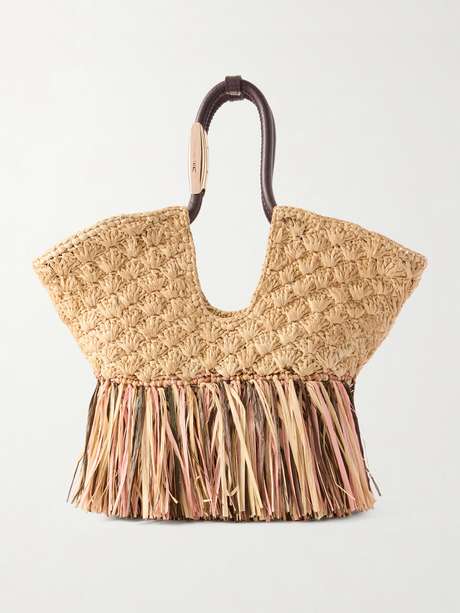 ZIMMERMANN Goldentime large embellished leather-trimmed fringed raffia tote