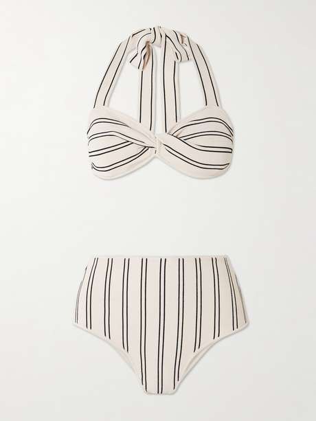 Zimmermann's bikini is made from soft stretch-modal that's knitted with stripes for a classic nautical feel. It has a twisted halterneck top and high-waisted briefs.