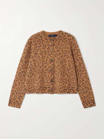 Brushed cheetah-print stretch-knit cardigan