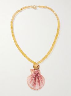 JENNIFER BEHRRoma gold-plated, citrine, shell and crystal necklace
