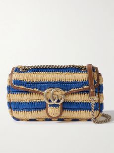 GUCCIGG Marmont 2.0 leather-trimmed striped raffia shoulder bag