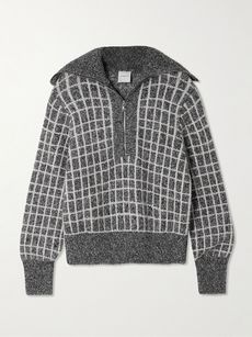 VARLEYFurley checked cotton-blend bouclé half-zip sweater