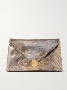 DRIES VAN NOTENMetallic lizard-effect leather clutch