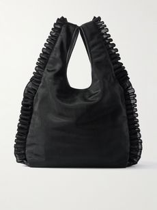 DRIES VAN NOTENLeather-trimmed ruffled mesh tote