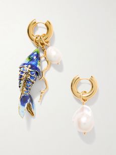 MARTHA CALVOBarrier gold-plated, pearl and enamel hoop earrings
