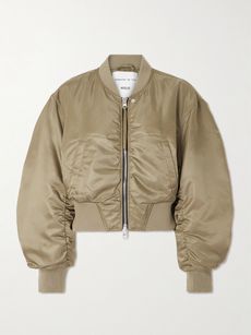 This season’s bomber jackets subvert the norm by playing with proportion and detailing that bring an entirely new dimension to this sporty staple. Japanese brand Sacai fuses timeless style with streetwear cool, and its oversized bomber comes with contrast edging and a statement pleat up the back that not only loosens up the silhouette, but gives it an urban, architectural mood, too. With chunky-zip details, it’s perfect paired with stompy boots and tartan skirts, as well as with relaxed-cut stonewashed jeans. Agolde’s collaboration with Shoreditch Ski Club offers a cropped, cinched style with voluminous sleeves – it feels fresh in a pale gold-green hue. Looking for a more classic silhouette? Anine Bing’s is a timeless choice rendered anew in deep burgundy, with subtle ruching up the sleeves.