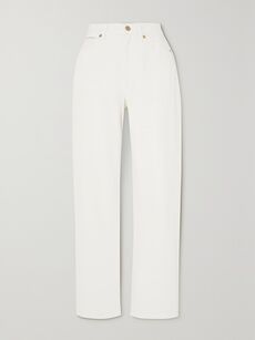 Tove – a London-based label created by two ex-Topshop designers, which debuted at London Fashion Week back in February – is a master of these minimal mix-and-match heroes. “I love the versatility of the brand’s strapless ‘Ida’ top,” says NET-A-PORTER acting fashion editor Charlotte Blazeby. “The bandeau top has recently become a real wardrobe must-have, and with its twist detail at the bust, this piece creates a super-flattering silhouette.” She suggests layering the tube top under a blazer or over a white tee and pairing with wide-leg pants and loafers for an easy, elegant look. “Combining the more formal top with a loose trouser and flat shoes gives it an effortlessly cool feel, and makes for a winning combo that’s perfect for running errands.” Try Burberry’s blue-and-white-striped cotton straight-leg pants, which feel summery but polished, and Emilia Wickstead’s ‘Aideen’ cotton-blend bouclé jacket for cooler days. Flats have become many editors’ shoe of choice for running between shows, and the ‘Bruni’ leather loafer from London label Malone Souliers is the perfect sole-savior for long days on the go.