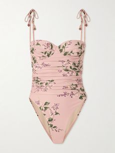 Rabano Wisteria bead-embellished floral-print recycled swimsuit