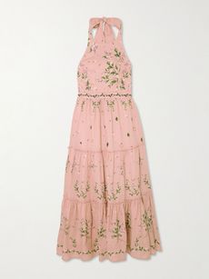 Consuelo Wisteria tiered embroidered floral-print linen halterneck midi dress