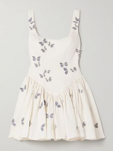 Pluma Lymanopoda appliquéd gathered linen mini dress