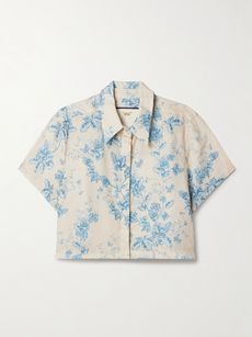 Virtuosa Bougainvillea cropped floral-print linen shirt