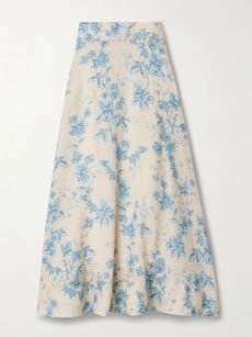 Bergamota Bougainvillea embellished floral-print linen midi skirt