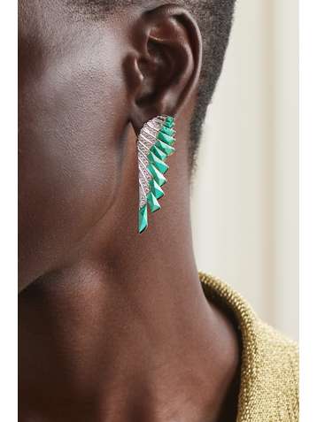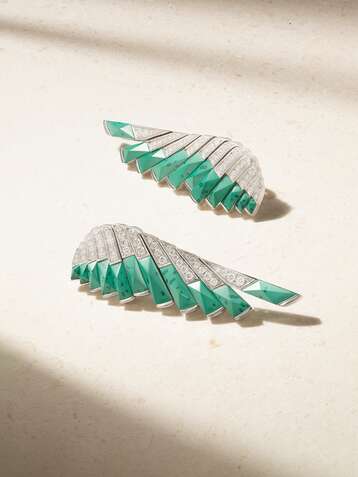 Wings 18-karat white gold, malachite and diamond earrings