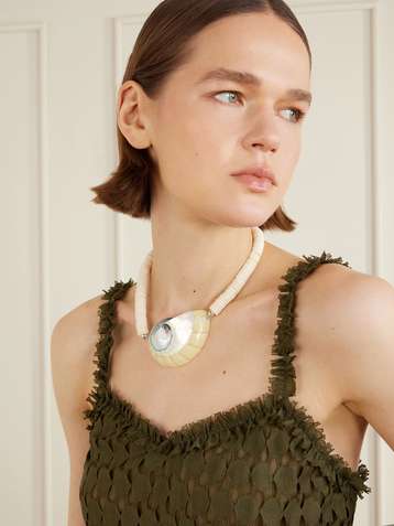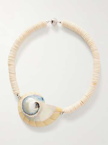Nautilus rhodium-plated, resin, agate and shell necklace