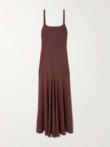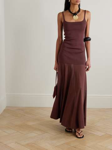 Cutout ribbed-knit and cotton-poplin maxi dress
