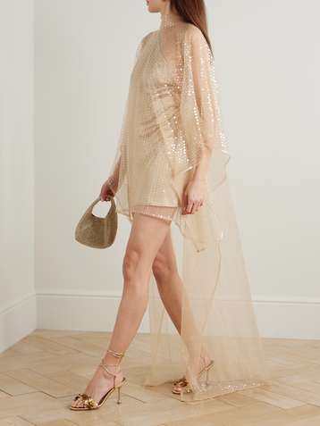 Del Rio Disco feather-trimmed sequined tulle mini dress