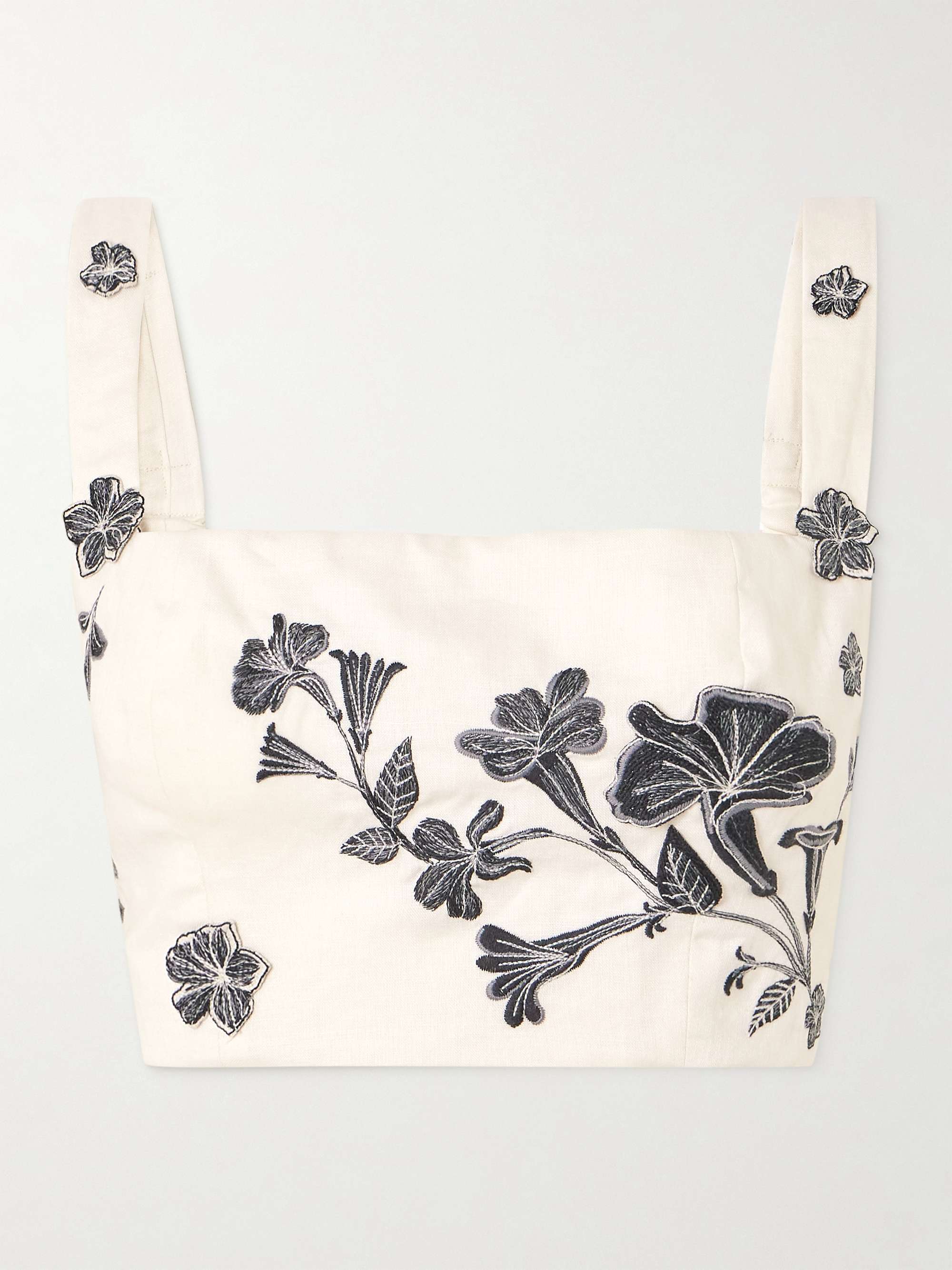 Agua by Agua Bendita's 'Cacao Guayacan' top is appliquéd and embroidered with flowers reminiscent of those seen around the brand's native Colombia. It's made from linen and has a cropped shape and wide straps.