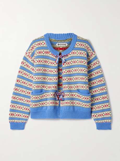 A nostalgic piece with thoughtful detail, BODE's 'Wedgewood' cardigan is made from wool that's jacquard-knitted with a '50s-inspired floral motif. Two pairs of ties secure the open front.