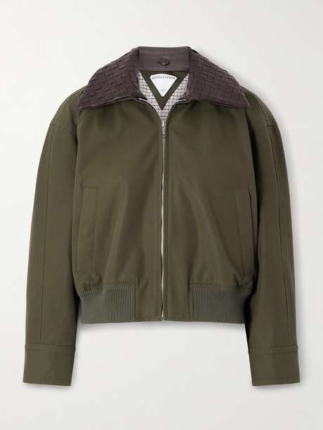 BOTTEGA VENETA Intrecciato leather-trimmed cotton-twill jacket