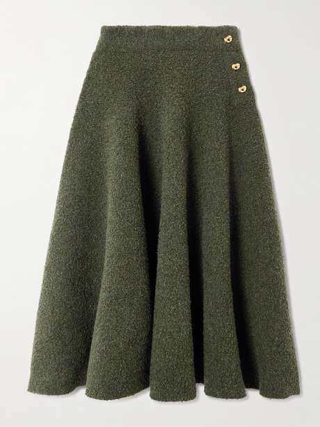 Whether styled with a turtleneck sweater or the coordinating cardigan in our edit, Bottega Veneta's skirt is sure to look chic. Made from wool-blend bouclé, it comes in an earthy dark-green shade and fastens with a trio of gold-tone buttons carved into knots.