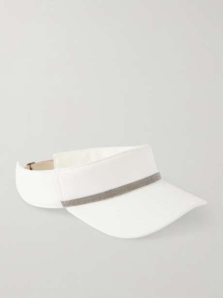 Brunello Cucinelli's tennis cap will bring Italian elegance to your courtside wardrobe. It's been made in Italy from canvas with leather trims and embellished with monili beads that bring a gorgeous glow.