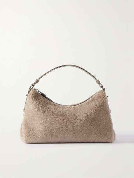 BRUNELLO CUCINELLI Large leather-trimmed faux fur shoulder bag