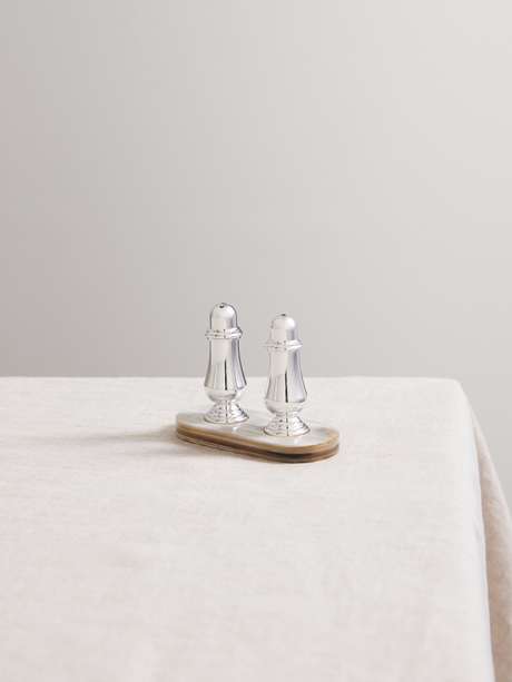 Bring a little Italian elegance to your dining table with Brunello Cucinelli's salt and pepper shakers. They're shaped from silver-plated metal in a fluid shape and rest on a polished horn base.