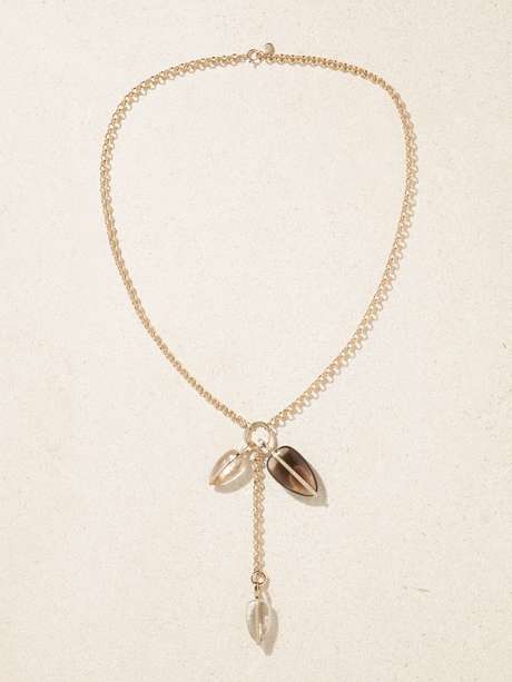 By Pariah's ‘Kalahari Collector’ necklace is inspired by the raw, natural beauty of the stones it’s designed around. Made from 14-karat recycled gold, it's strung with smooth smoky and rutilated quartz that are carved into smooth pebble-shaped pendants and illuminated by 0.21-carats of diamonds.