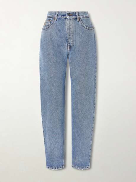 Chloé's jeans are detailed with a gold-tone logo plaque at the coin pocket – the burnished finish lends a vintage feel. Made from certified organic denim, they sit high on the waist and have relaxed legs that taper towards the cuffs.
