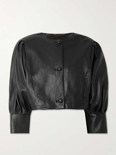 Chloé's jacket is made from buttery leather that'll soften beautifully over time. The cropped length and cuffed, gathered sleeves give it an '80s feel. Wear yours with high-rise pants.