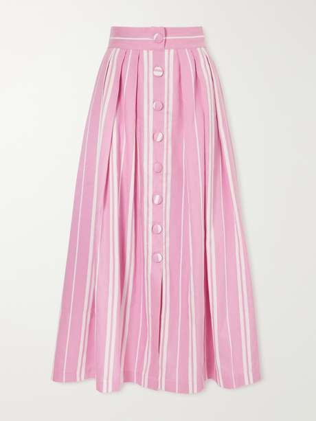 DESTREE Irving striped cotton, TENCEL™ and linen-blend midi skirt