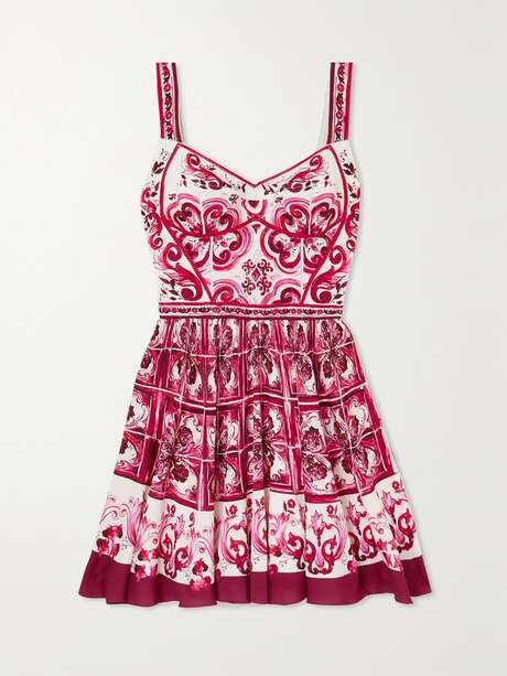 DOLCE&GABBANA Maiolica pleated printed stretch silk-blend mini dress