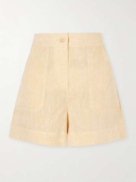 Eres’ 'Enjouée' shorts are crafted from lightweight linen in a soft pastel yellow. They sit high at the waist and feature a relaxed fit with roomy legs, making them perfect for warm weather. Pair them with the matching top for a coordinated, breezy look.