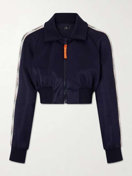 ETRO Cropped canvas-trimmed satin-jersey track jacket