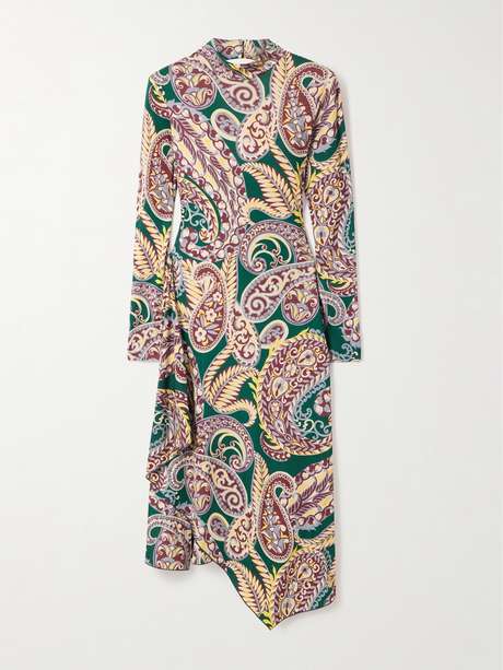 Etro's dress is defined by a vibrant paisley print that's reminiscent of '70s patterns. It's made from slinky stretch-jersey for a figure-skimming fit and has a mock neckline and open back. The asymmetric skirt moves beautifully.