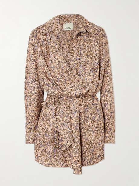 ISABEL MARANT Harmony floral-print satin-jacquard wrap mini shirt dress