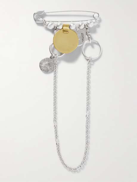 Isabel Marant's 'Bonnie' brooch looks so good pinned to a blazer or bag. Made from a mixture of silver- and gold-tone brass, it's designed to resemble a safety pin strung with discs, beads and a dangling chain.
