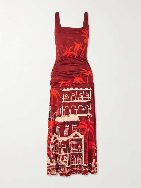 For Johanna Ortiz, there's a certain kind of luxury in movement and self-expression. Ticking the box on both those virtues, this 'Plant Of Joy' maxi dress is cut from shiny satin-jersey, masterfully gathered through the waist to highlight your figure. The printed finish speaks to the designer's Colombian heritage.