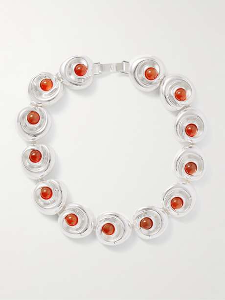 Julietta describes its sculptural jewelry as "wearable works of art". Handmade in the designer's New York studio, this 'Agnes' necklace is crafted from swirls of silver-plated metal and set with striking red carnelian cabochons.